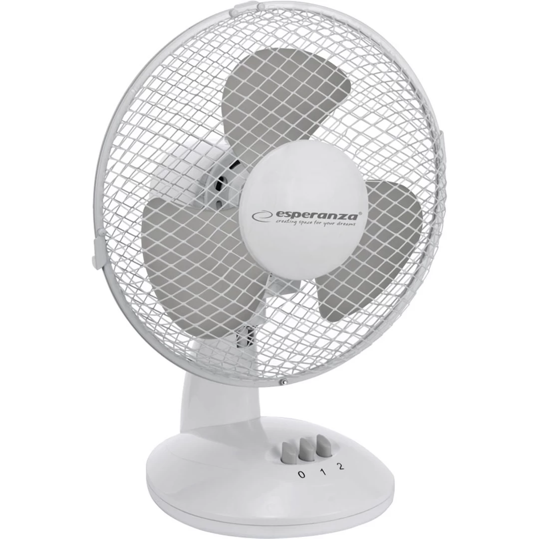 Esperanza wentylator 9" Biurkowy Zephyr Stylowy wygląd i atrakcyjna kolorystyka sprawią, że wentylator bez trudu wkomponuje się w każde pomieszczenie. Kratkowana osłona wirujących łopatek gwarantuje bezpieczeństwo. Spraw, by cichy wiatr szybko i sprawnie chłodził twoje biuro lub dom. czytaj więcej