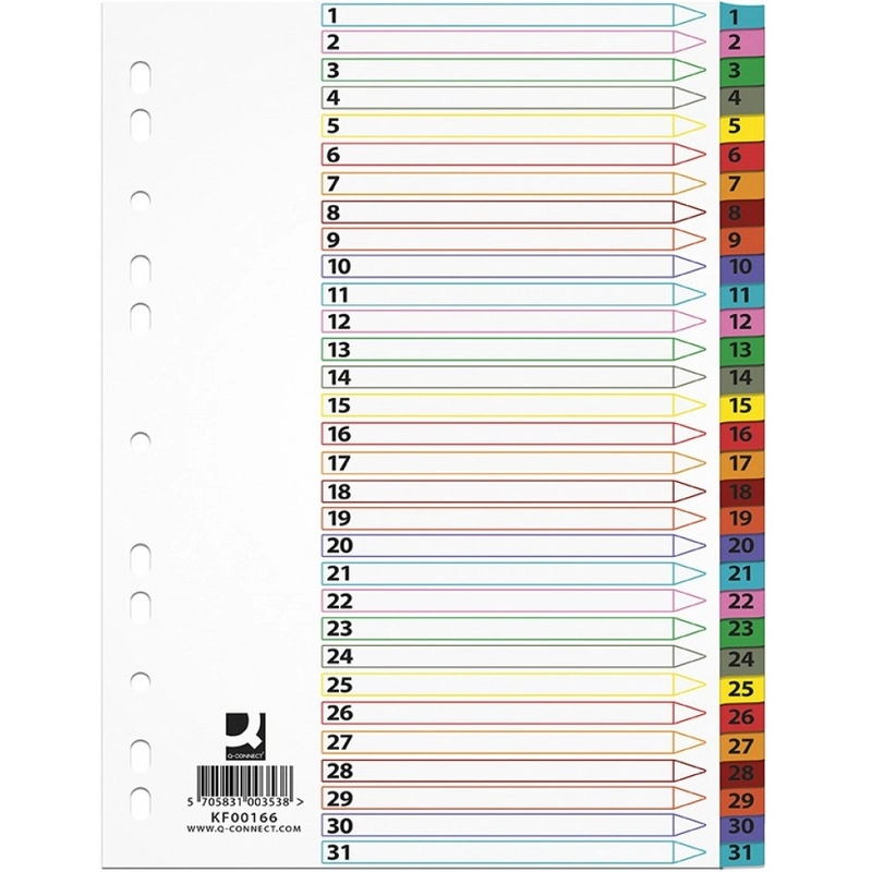 Przekładki wykonane z białego kartonu o gramaturze 170 gsm. Plastikowy, kolorowy indeks pokryty folią Mylar. Pierwsza karta opisowa z numerami w kolorze białym. Cechy produktu: - ilość przekładek: 5, 10, 12, 20, 31 - dziurkowanie: 11 (ze wzmocnionym obszarem europerforacji) - wymi czytaj więcej