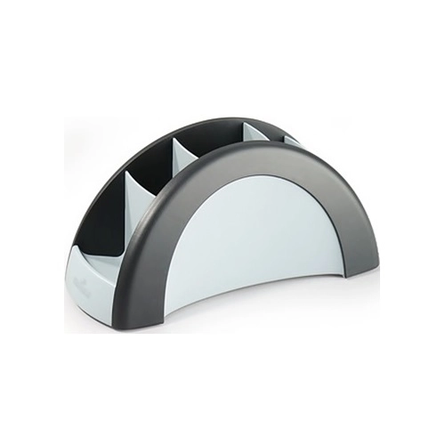Stojak na przybory z wysokiej jakości tworzywa. Pomieści różnego rodzaju przybory biurowe. Posiada 5 przegródek o różnej wielkości i głębokości. Wyposażony w gumowe nóżki gwarantuje dużą stabilność i przyczepność.