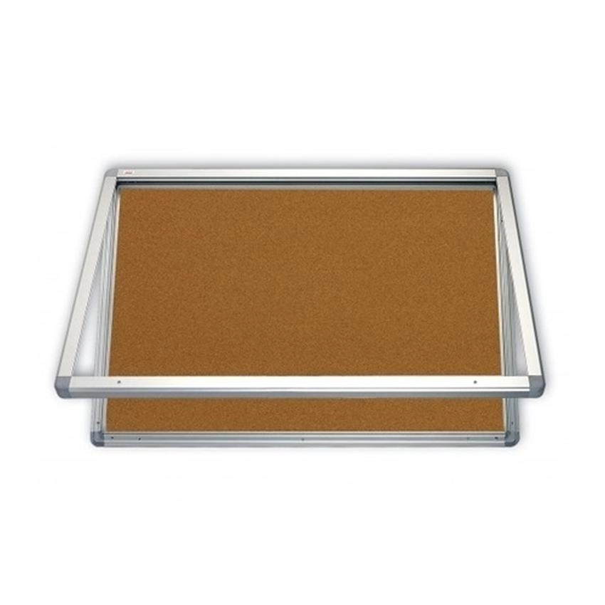 Naścienna gablota informacyjna wykonana z profilu aluminiowego, do używania wewnątrz budynku.