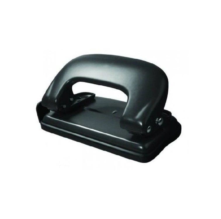 • Metalowy dziurkacz biurowy w matowej obudowie.