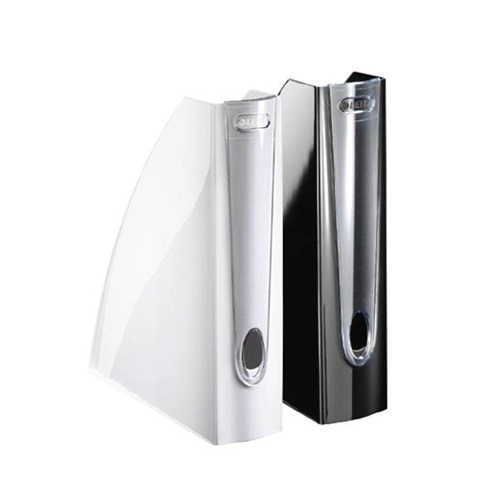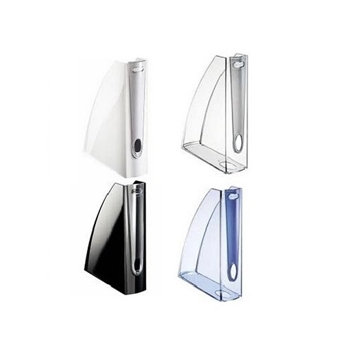 Elegancki, wytrzymały i stabilny pojemnik na dokumenty. Wykonany z wysokiej jakości plastiku. Niski przód stojaka ułatwia dostęp do dokumentów.