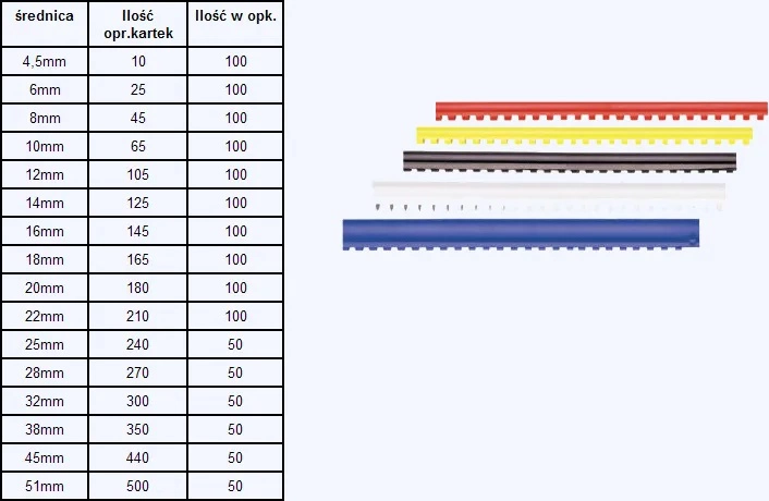 Grzbiety Plastikowe Do Bindowania Comb czarny/6 mm/100 szt.