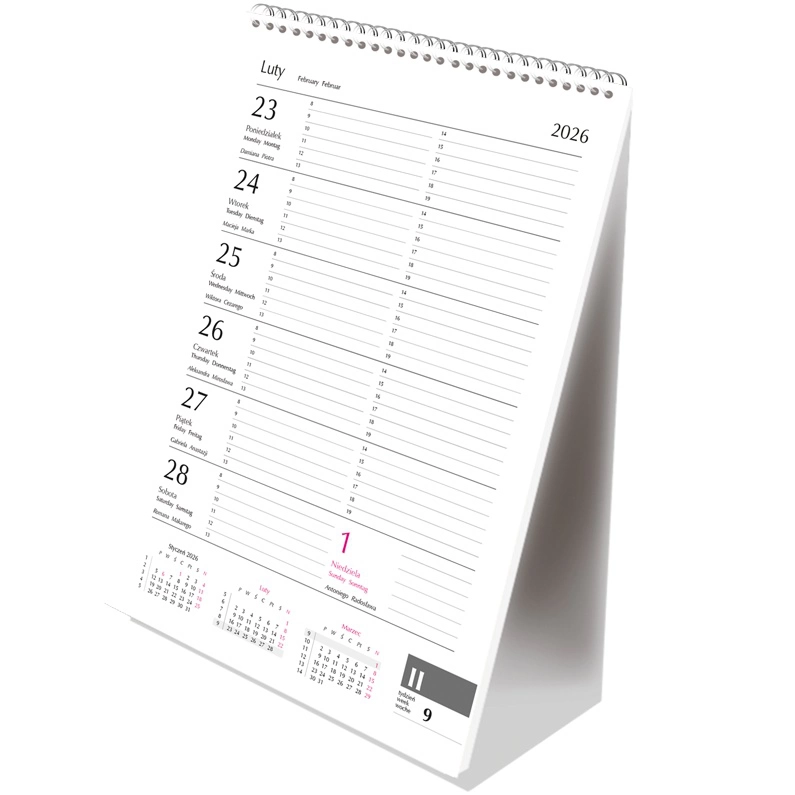 • układ: 1 tydzień – 1 strona