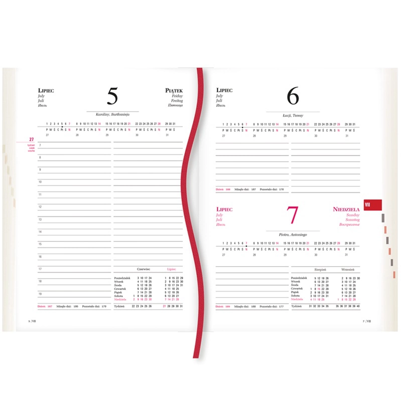 • układ kalendarium: 1 dzień - 1 strona