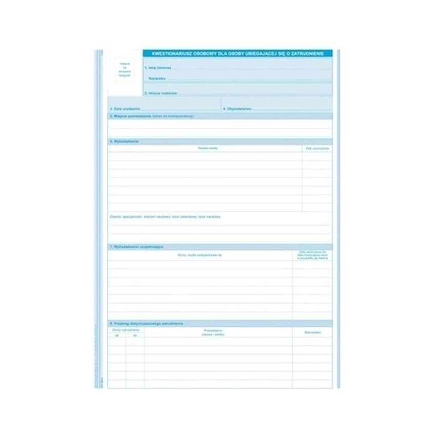 Kwestionariusz Osobowy Dla Osoby Ubiegającej Się O Zatrudnienie 504-A Kwestionariusz osobowy dla osoby ubiegającej się o zatrudnienie/ indeks: 504-A/ typ: offset / A4
