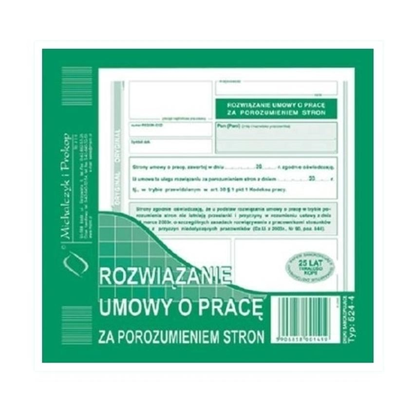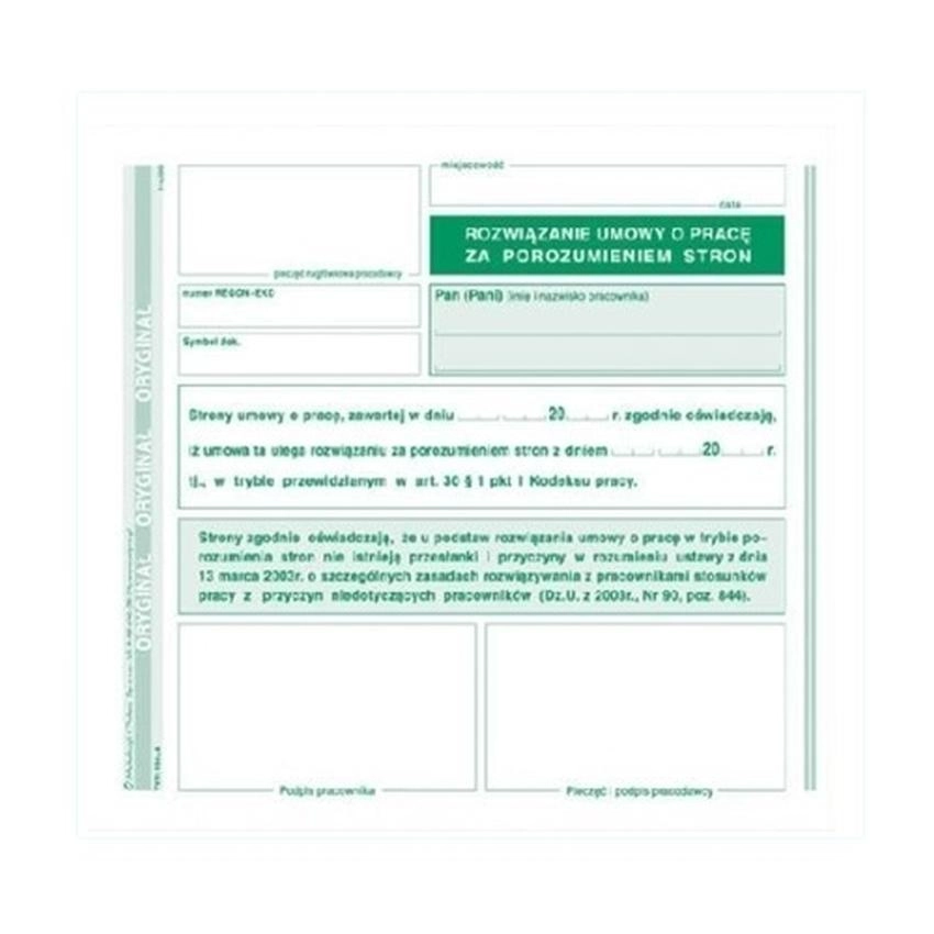 Rozwiązanie Umowy O Pracę Za Porozumieniem Stron 524-4 Rozwiązanie umowy o pracę za porozumieniem stron (2/3 A5) | indeks: 524-4 | typ: jednostronny, samokopiujący