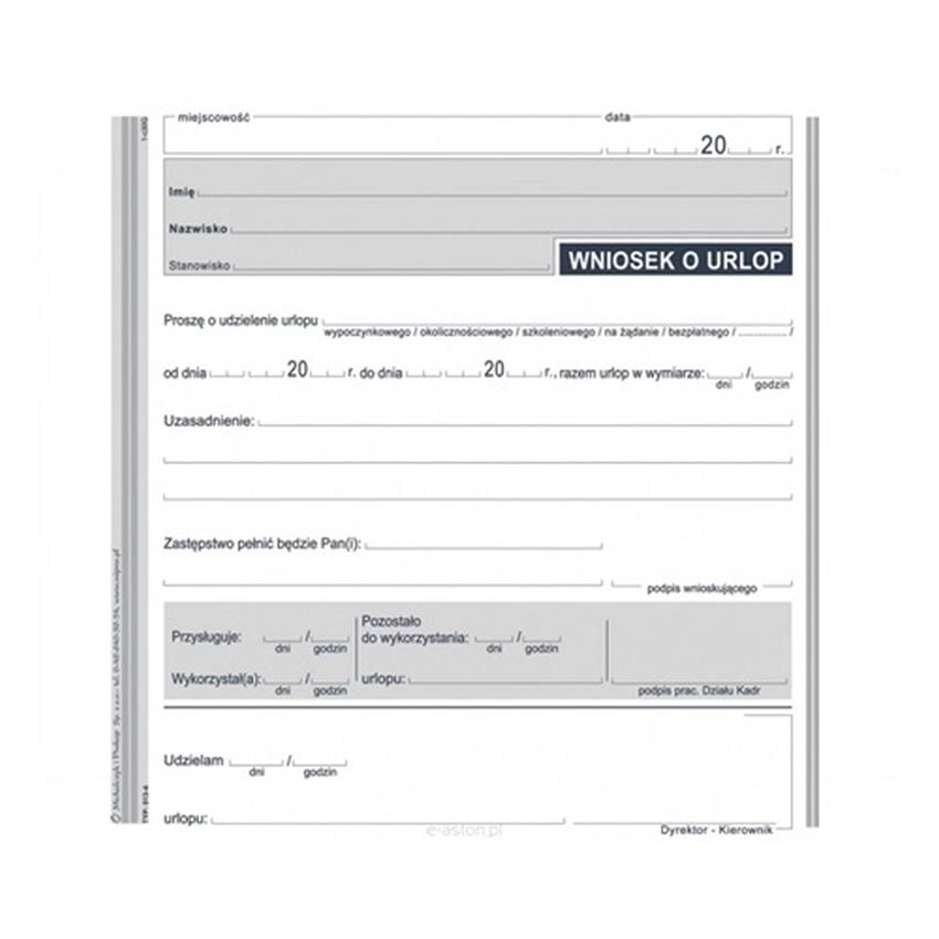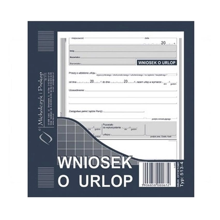 Wniosek O Urlop 513-4 Wniosek o urlop/ indeks: 513-4/ typ: offset / 2/3 A5