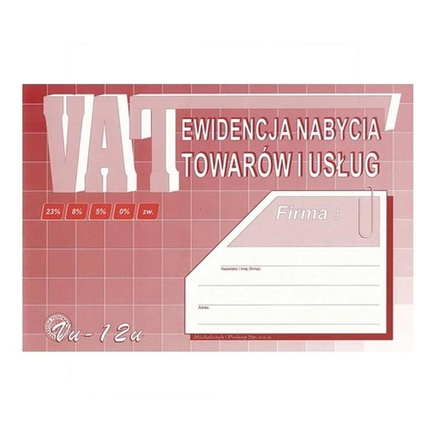 Ewidencja Nabycia Towarów I Usług Vu-12U Ewidencja nabycia towarów i usług (A5) index: Vu-12u | typ: offset