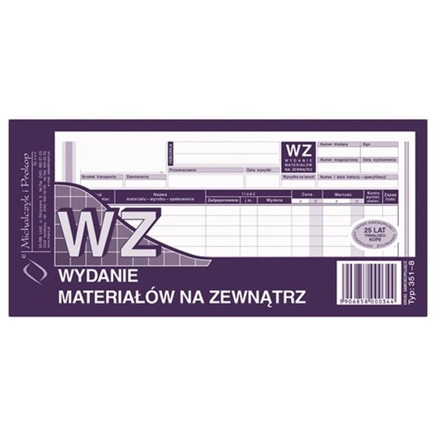 Wz - Wydanie Materiałów Na Zewnątrz 351-8 WZ Wydanie materiałów na zewnątrz (1/3 A4) indeks: 351-8 | typ: wielokopia