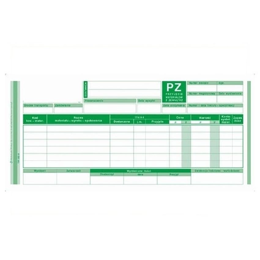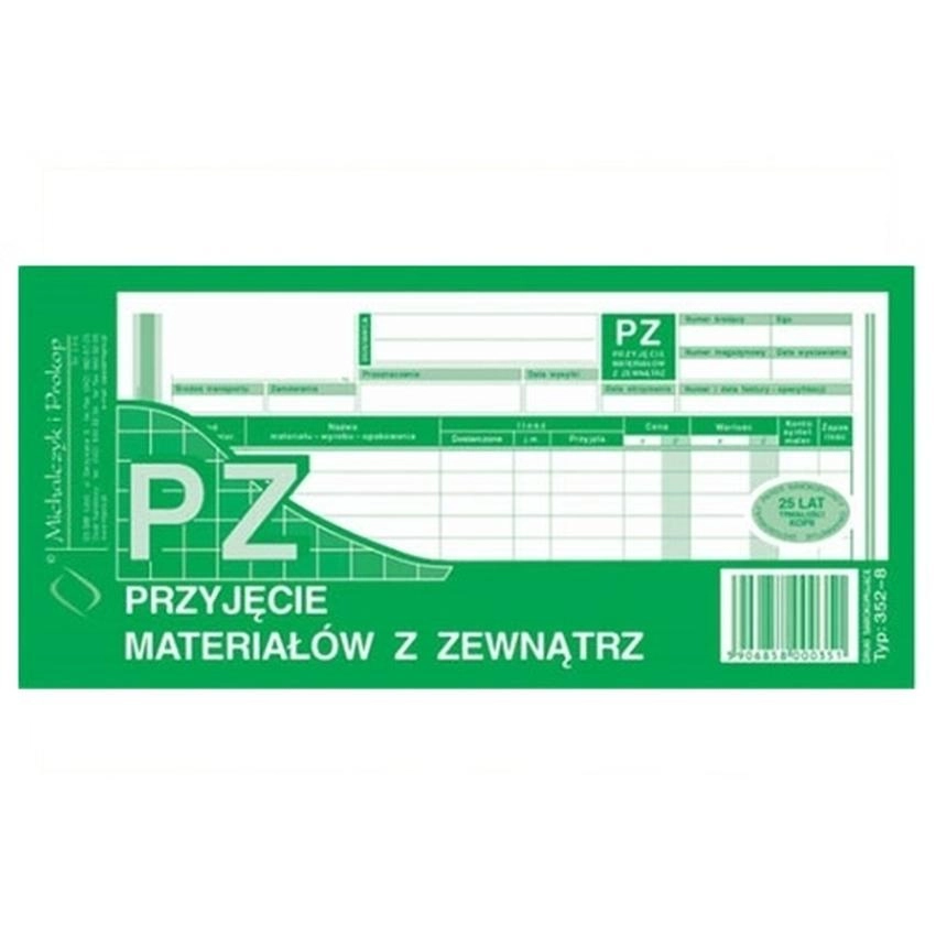 Pz - Przyjęcie Materiałów Z Zewnątrz 352-8 PZ Przyjęcie materiałów z zewnątrz (1/3 A4) indeks: 352-8 | typ: wielokopia