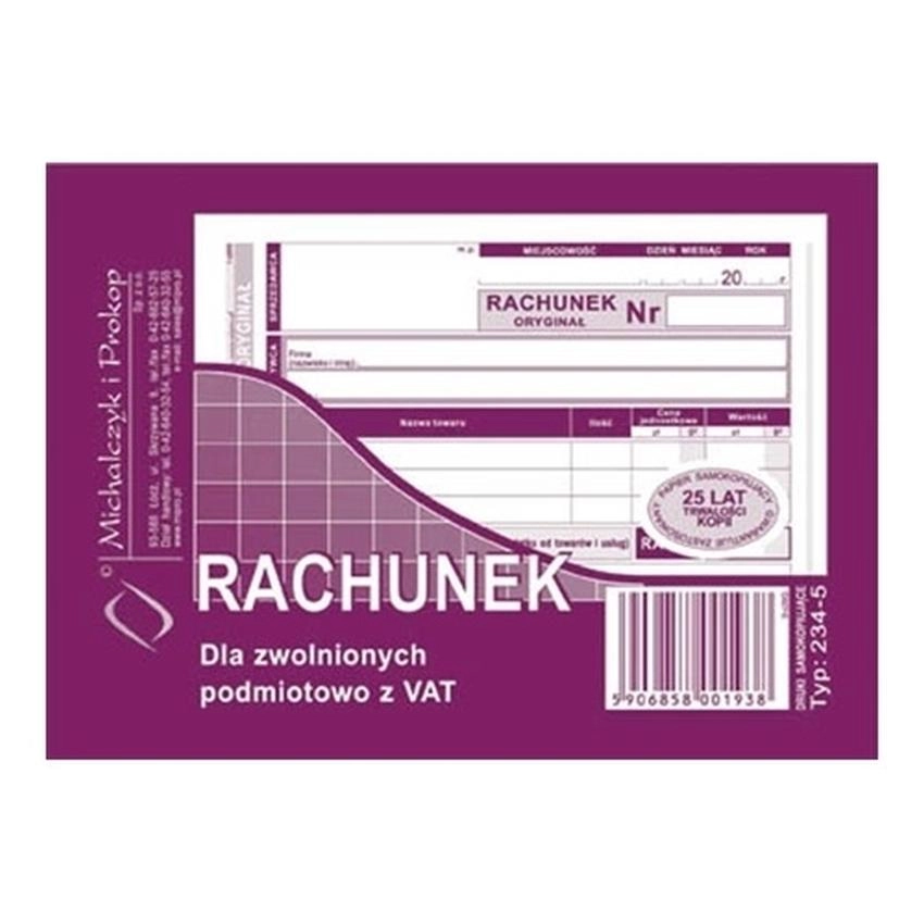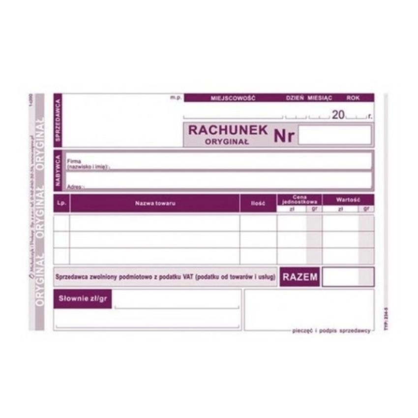 Rachunek Dla Zwolnionych Podmiotowo Z Vat 234-5 Rachunek dla zwolnionych z VAT (poziom) (A6) indeks: 234-5 | typ: oryginał + kopia