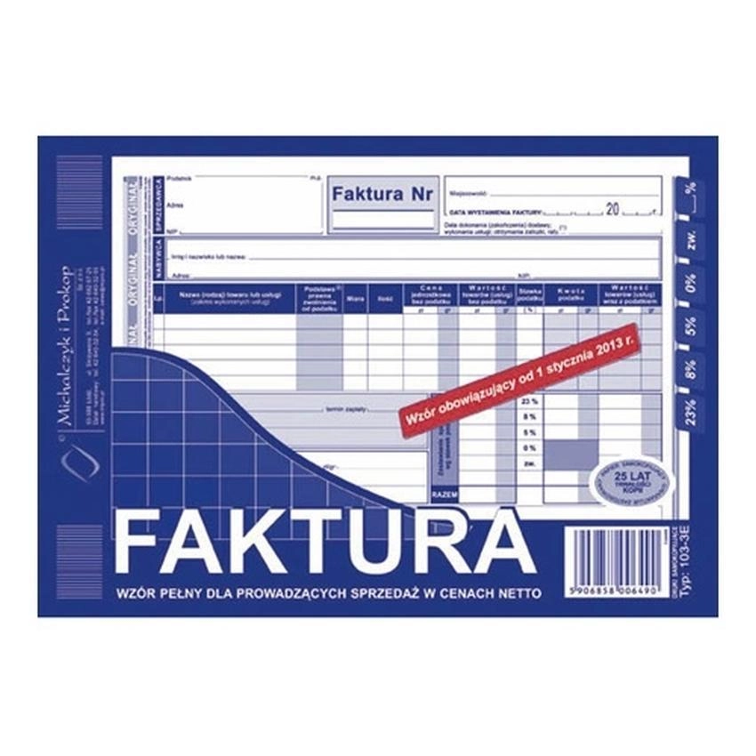 Faktura Wzór Pełny Dla Prowadzących Sprzedaż W Cenach Netto 103-3E Faktura wzór pełny dla prowadzących sprzedaż w cenach netto (A5) indeks: 103-3E | typ: oryginał + kopia