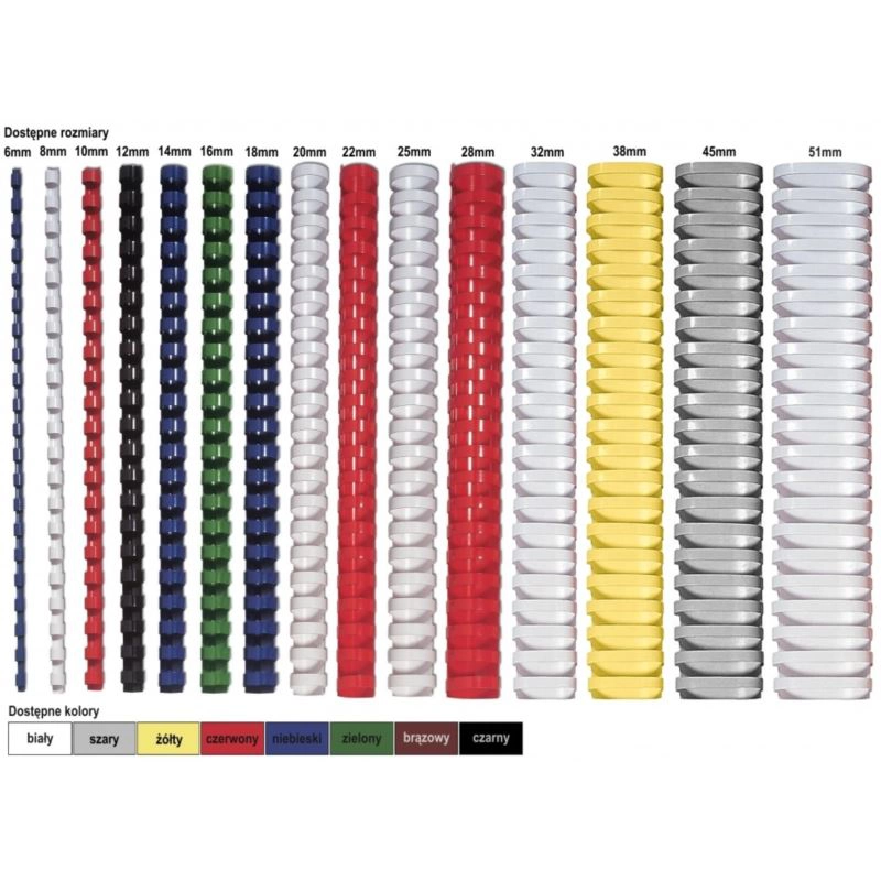 Grzbiety plastikowe do bindownic o szerokości 12 mm.