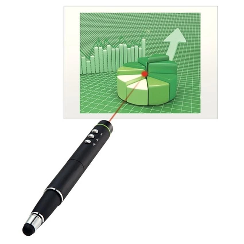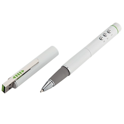 Z funkcją "podłącz i używaj", dostosowany do pracy z komputerami Windows i Mac, nie wymaga dodatkowego oprogramowania. Port USB wbudowany w skuwkę długopisu, wysuwa się po naciśnięciu. Intuicyjne sterowanie 3 przyciskami: przechodzenie na następną stronę lub cofanie na poprzednią oraz z laserowy wskaźnik. Czerwone światło lasera idealnie zaznacza wybrany element.