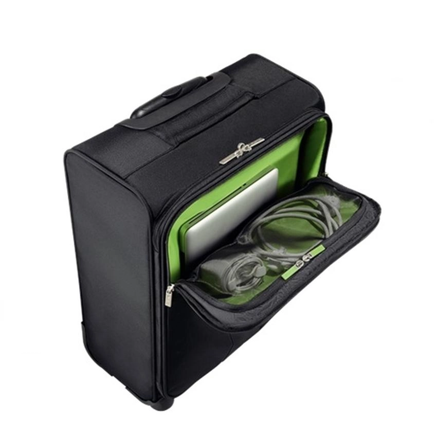 Wysokiej jakości, lekka, w rozmiarze spełniającym wymogi bagażu podręcznego w samolotach, z wnętrzem gwarantującym wygodę pakowania. Posiada przestronną komorę główną i mniejszą kieszeń od frontu i umożliwia odseparowanie laptopa, ekwipunku służbowego i prywatnego. Z optymalnym zabezpieczeniem zamkiem TSA – wszystkie komory możesz bezpiecznie zamknąć, a walizkę przymocować do jakiegoś obiektu za pomocą stalowej linki.