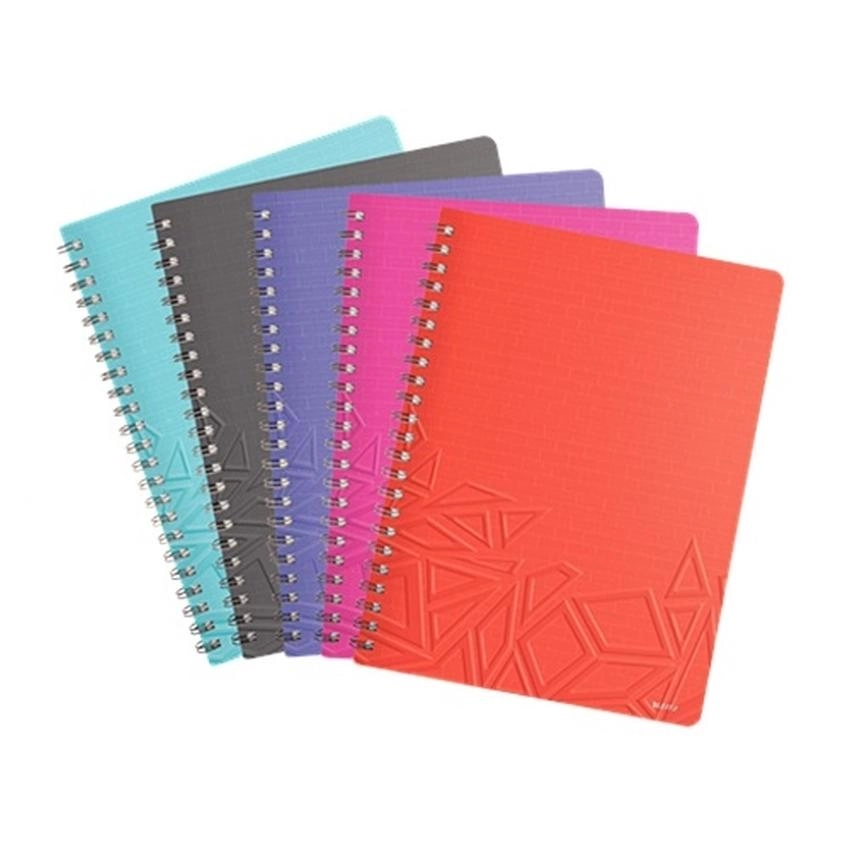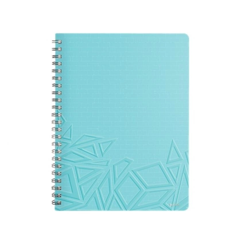 Notatnik Leitz z lekką, ale bardzo wytrzymałą, giętką okładką z laminowanego kartonu. Oprawa w spiralę umożliwia pełne (360°) otwarcie notatnika, a także zawinięcie kartek pod spód i używanie notatnika jako podkładki do robienia notatek.