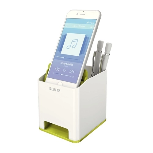 Kubek Na Długopisy Leitz Wow Ze Wzmacniaczem Dźwięku biały, 2 przegródki