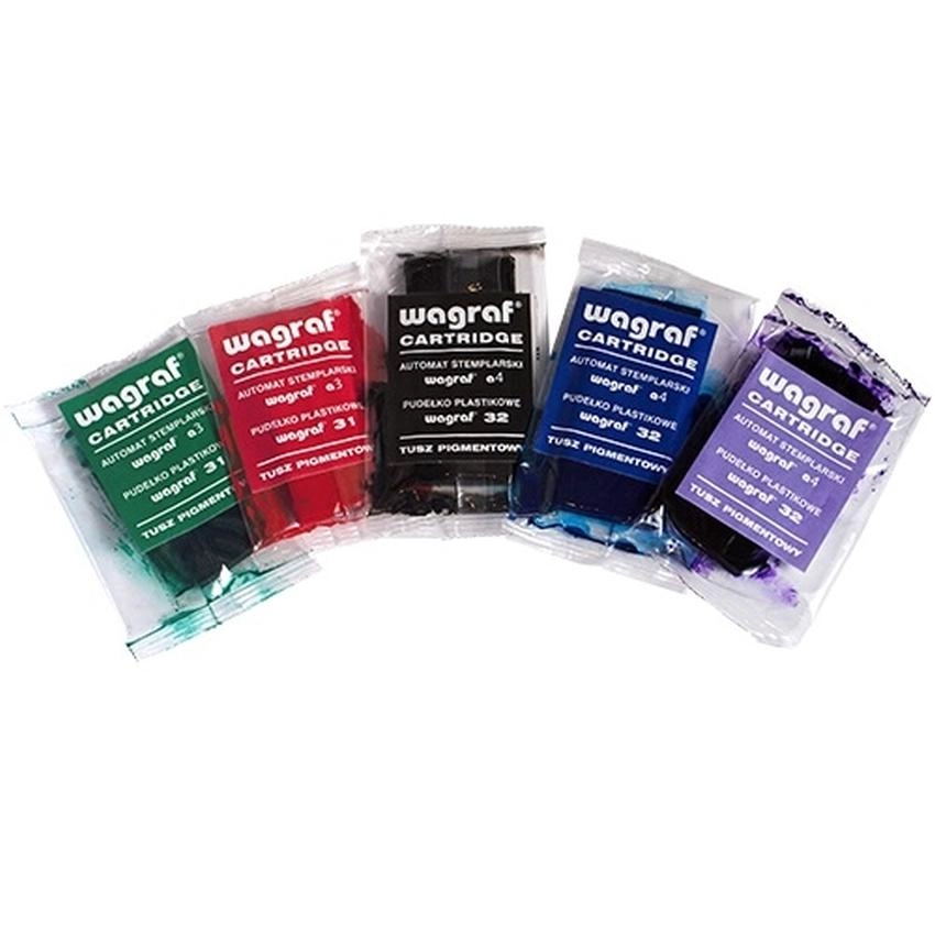Cartridge WAGRAF to wkład wykonany ze specjalnej pianki, który dostarczany jest natuszowany tuszem olejowym Pigment lub ew. suchy do samodzielnego tuszowania. Cartridge używany jest tylko i wyłącznie do systemu ramkowego. Montowany jest w pieczątce za pomocą wygodnej w użyciu, zatrzaskiwanej ramki, nadając kolor.