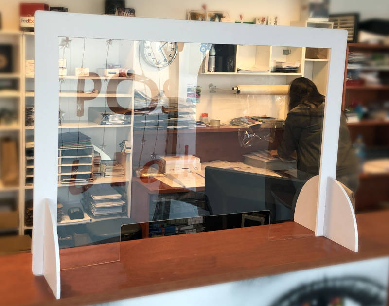 Solidna bariera ochronna na ladę sklepową, recepcyjną czy biurko. Stanowi fizyczną barierę dla zarazków, zmniejszając ryzyko kontaktu. Przegroda do minimum ogranicza kontakt z osobami trzecimi.