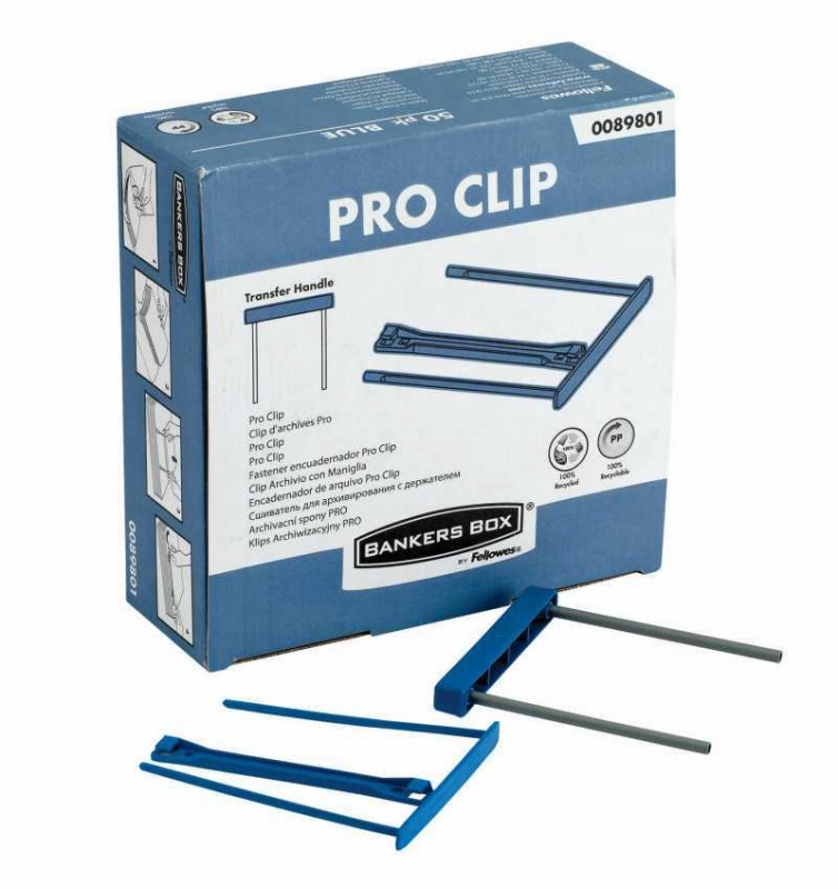 Klipsy Archiwizacyjne Fellowes Pro Z Rączką niebieskie, 50 sztuk