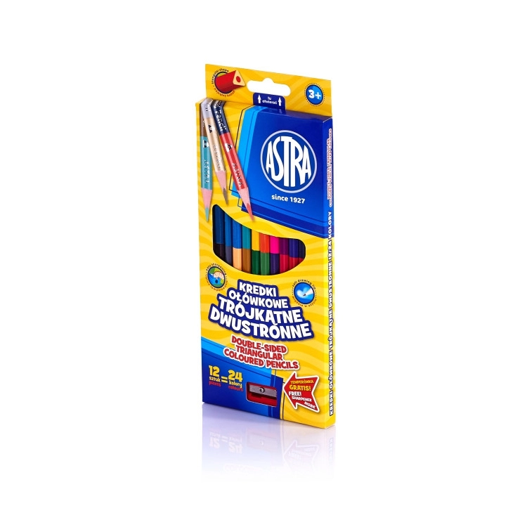 Kredki Ołówkowe Dwustronne Astra kredki dwustronne 12/24 kolory z temperówką trójkątne ASTRA