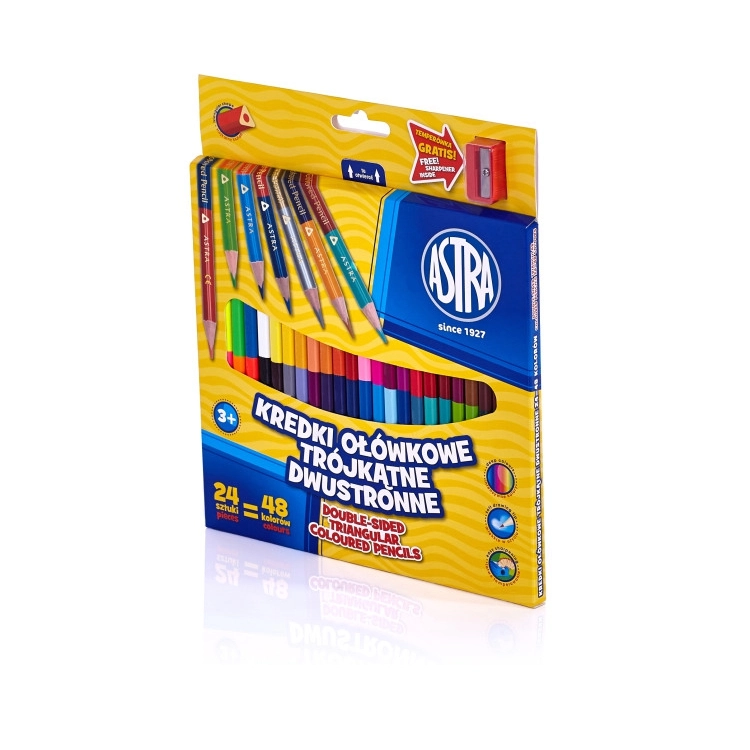 kredki dwustronne 24/48 kolorów z temperówką trójkątne ASTRA ( A.36737.3 )