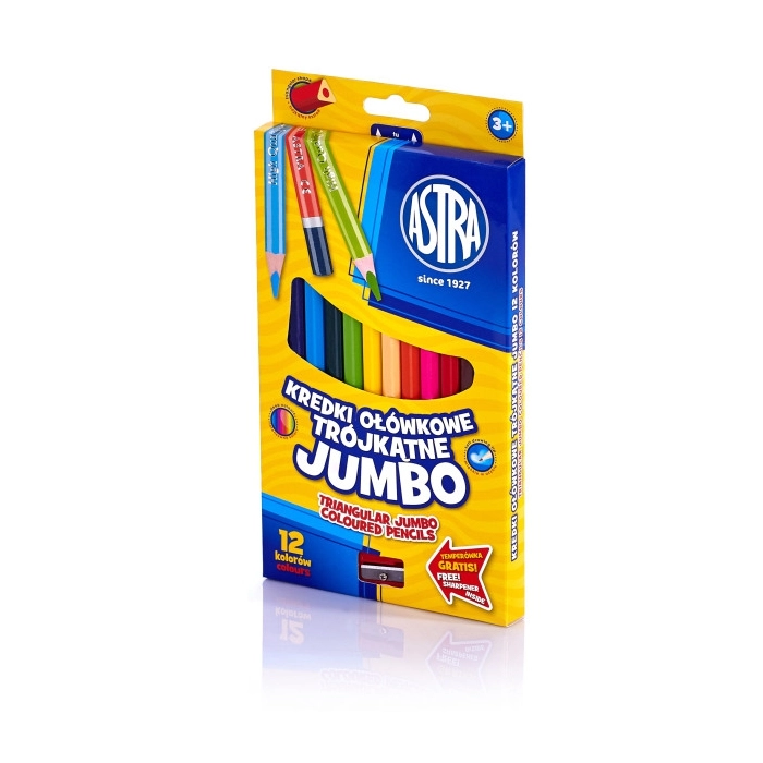Kredki Ołówkowe Trójkątne Astra kredki 12  kolorów, z temperówką,  JUMBO ASTRA