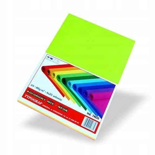 Papier Typograf 80G 25 X 4 KOLORY A3, neonowe