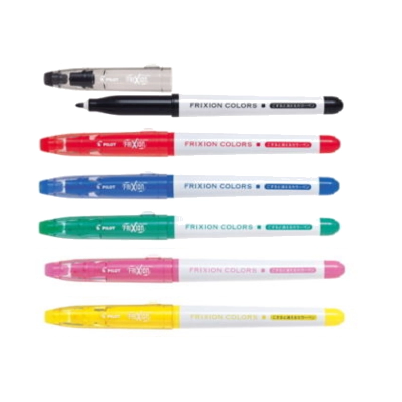 Nowa seria wymazywalnych flamastrów Frixion Colors w 12 głębokich kolorach od subtelnej żółci, po głęboką czerń! Sprawdzą się idealnie przy pierwszych rysunkach lub nauce kolorowania. Doskonale pobudzą kreatywność, dzięki wielokrotnym możliwościom nanoszenia zmian. Zaszyfrowane wiadomości będą jeszcze bardziej kolorowe! Tusz znika dzięki potarciu silikonową końcówką umieszczoną na skuwce, która idealnie współgra z flamastrem. Rysunek pojawia się ponownie przy temperaturze min. -10_C. Kolorowanie jeszcze nigdy nie było tak łatwe i przyjemne każda pomyłka znika bez śladu!Flamastry dostępne w kolorach: czarny, czerwony, niebieski, zielony, jasnozielony, jasnoniebieski, różowy, jasnoróżowy, fioletowy, pomarańczowy, żółty i brązowy. Dostępne w zestawie 12 kolorów i 6 kolorów (czarny, niebieski, zielony, żółty, różowy, czerwony) tusz reaguje na działanie temperatury znika przy +65 C, pojawia się przy -10 C.