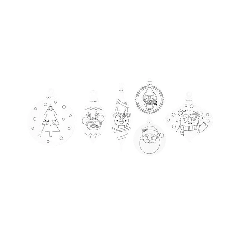 Mix świątecznych bombek: w zestawie 6 wzorów, każdy po 2 sztuki. Wymiary: od 80 do 165 mm, kolor: biały, blister: 12 szt.