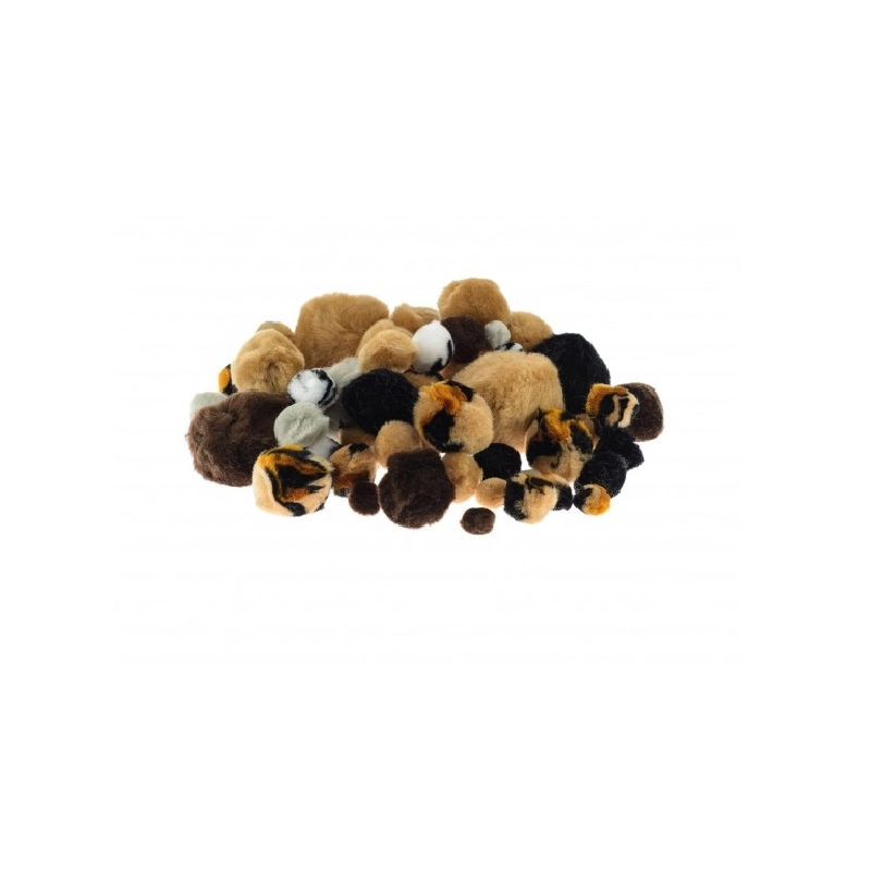 Pompony w naturalnych i metalicznych kolorach, można wykorzystać na wiele sposobów, sprawdzą się do tworzenia wszelkich ozdób, kartek okolicznościowych, obrazków 3d, ludzików i zwierzątek. Zapewniają zabawę, rozwijają umiejętności plastyczne, uczą kreatywności.