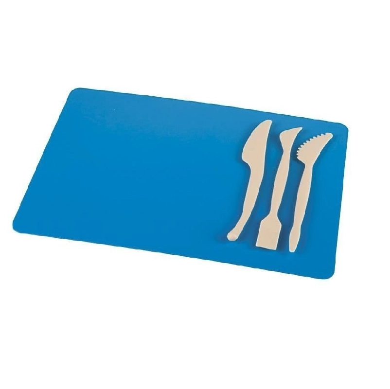 Opakowanie zawiera: plastikową deseczkę w formacie A4 oraz zestaw trzech narzędzi do modelowania. Każda szpatułka posiada różne zakończenia ułatwiające krojenie, uzupełnianie ubytków w rzeźbie oraz ozdabianie.