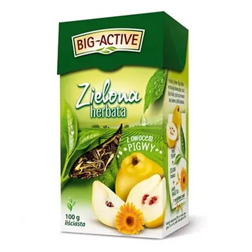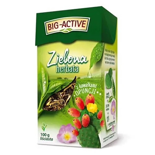 Herbata zielona Big Active zawiera m.in. przeciwutleniacze, witaminy, sole mineralne, garbniki, a także teinę – stymuluje ona układ nerwowy i pomaga się skupić.