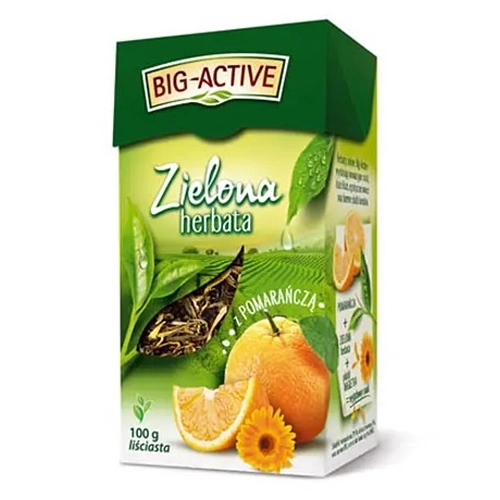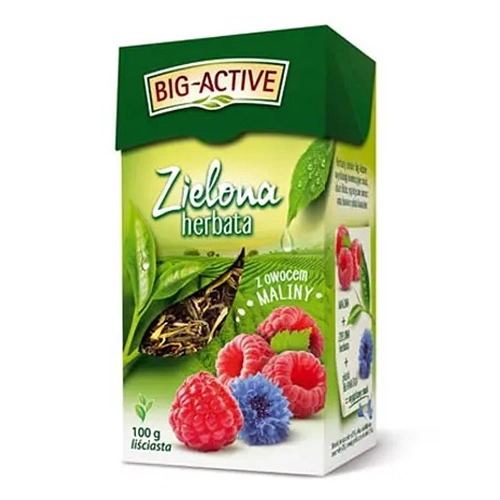 Herbata Zielona Liściasta Big-Active z owocem maliny, 100 g