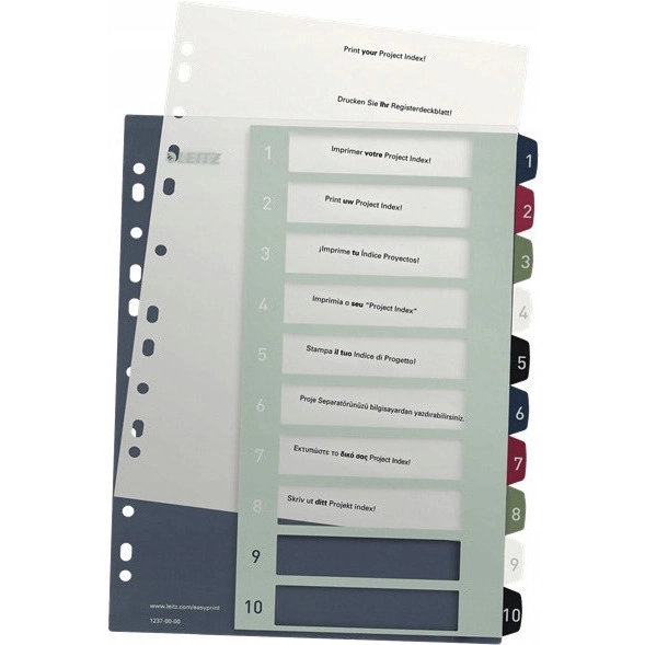 Przekładki plastikowe numeryczne Leitz Style z możliwością nadrukowania tekstu 1-10, 10 sztuk