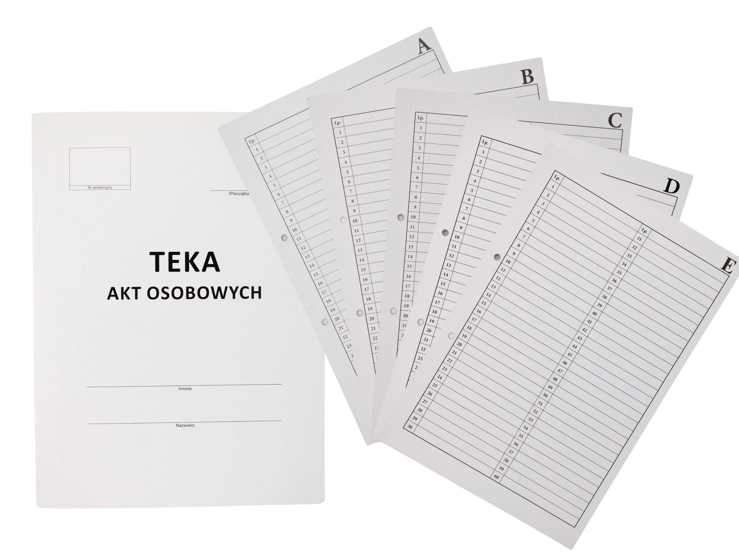 Teczka do akt osobowych A4 350 g bezkwasowa + wkładka ABCDE KIEL-TECH