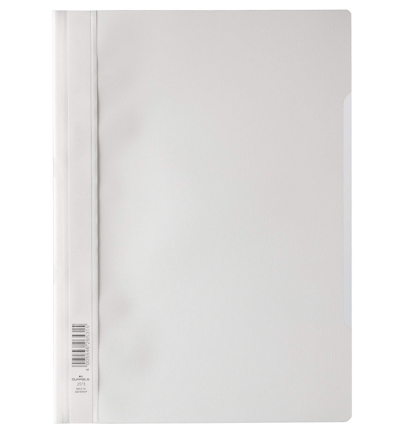 Skoroszyt PP z przezroczystą okładką Durable A4  biały, 50 sztuk