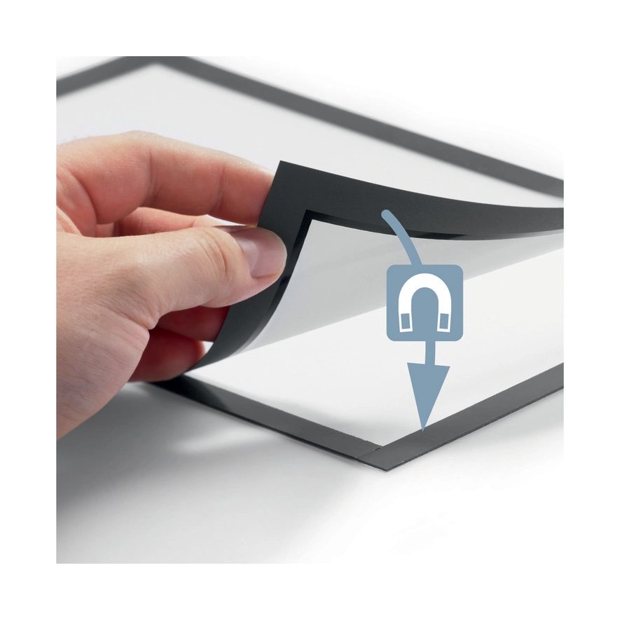 • Uchylna magnetyczna ramka umożliwia szybkie umieszczanie i wymienianie dokumentów.