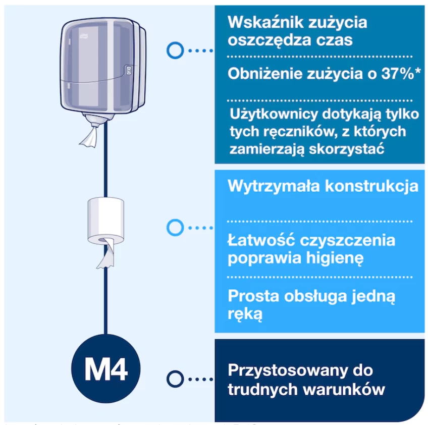 Dozownik Tork Reflex midi to funkcjonalne i higieniczne rozwiązanie stworzone z myślą o miejscach o dużym natężeniu ruchu – takich jak toalety publiczne, kuchnie czy zaplecza gastronomiczne. Dzięki nowoczesnemu systemowi M4 zapewnia dozowanie po jednym listku, co ogranicza zużycie ręczników nawet o 37% w porównaniu do tradycyjnych dozowników.