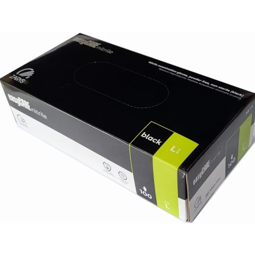 Rękawiczki nitrylowe bezpudrowe, kolor czarny, rozmiar S, opakowanie zawiera 100 sztuk, marka easyCARE. Rękawiczki NITRYLOWE L czarne bezpudrowe (100szt.) easyCARE