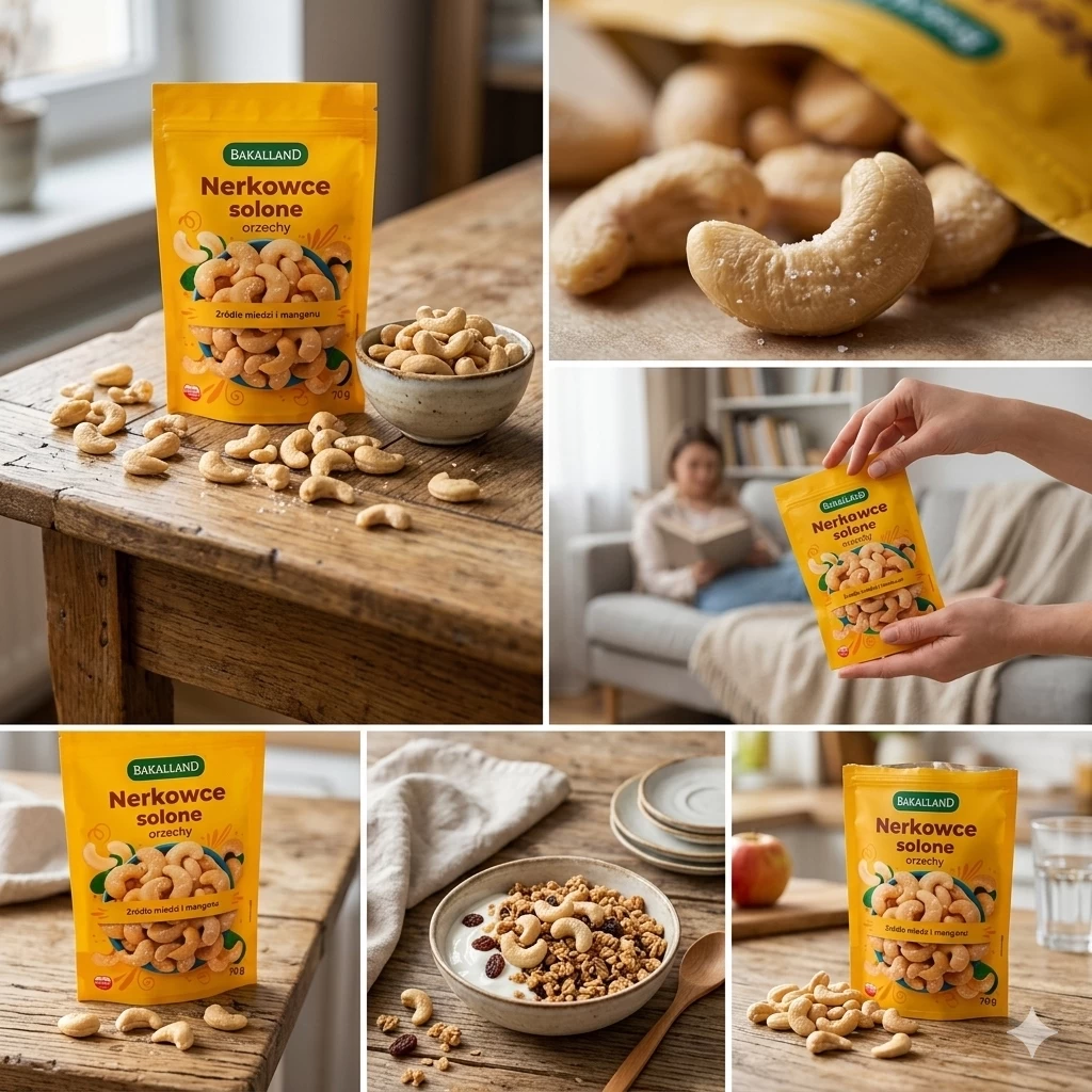Orzechy nerkowca solone BAKALLAND to idealna przekąska do biura, która dostarcza energii i smaku w jednym.