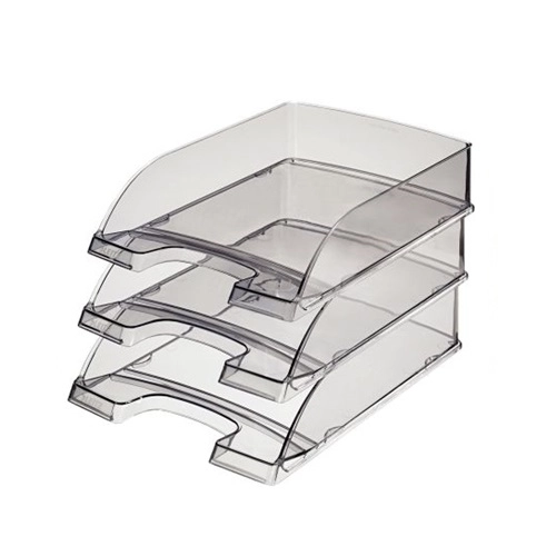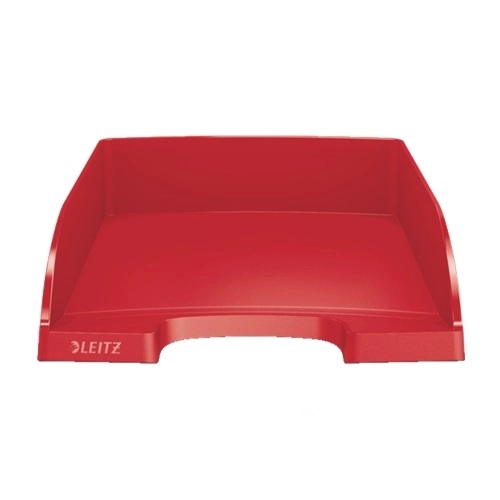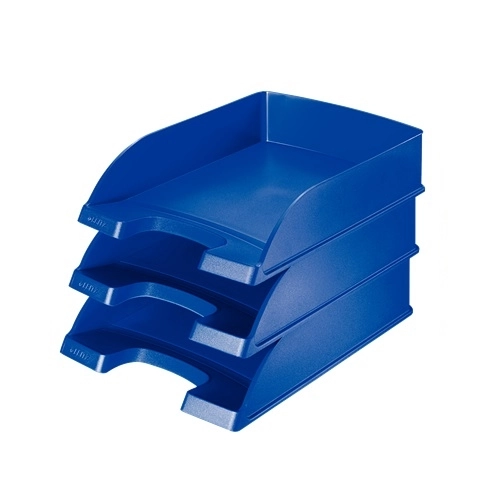 Element systemu modułowego półek na dokumenty Leitz Plus, w którym każdy z 3 rozmiarów może być umieszczony jeden na drugim prosto lub schodkowo. Wzornictwo i kolorystyka spójna z linią produktów na biurko Leitz Plus.
