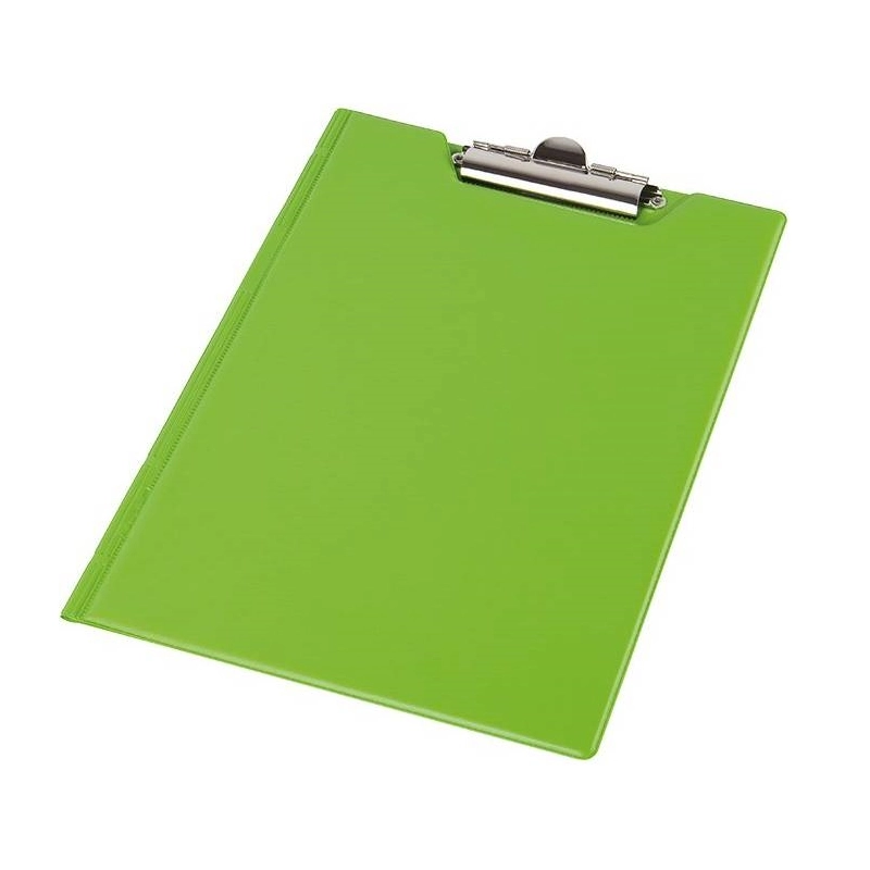 Podkładka do pisania z okładką, wykonana z bardzo lekkiej tektury oblewanej folią PVC lub ekologiczną folią winylową. Szeroka klamra trzyma kartki przed pogubieniem.