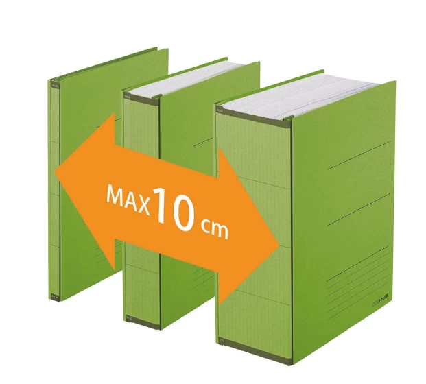 Innowacyjna teczka - skoroszyt, który może zastąpić każdy segregator. Dzięki regulowanej szerokości grzbietu można optymalnie wykorzystać powierzchnię na półce i znacznie zwiększyć ilość wolnego miejsca. Ułatwia przechowywanie niewielkich plików dokumentów, zajmuje niewiele miejsca.